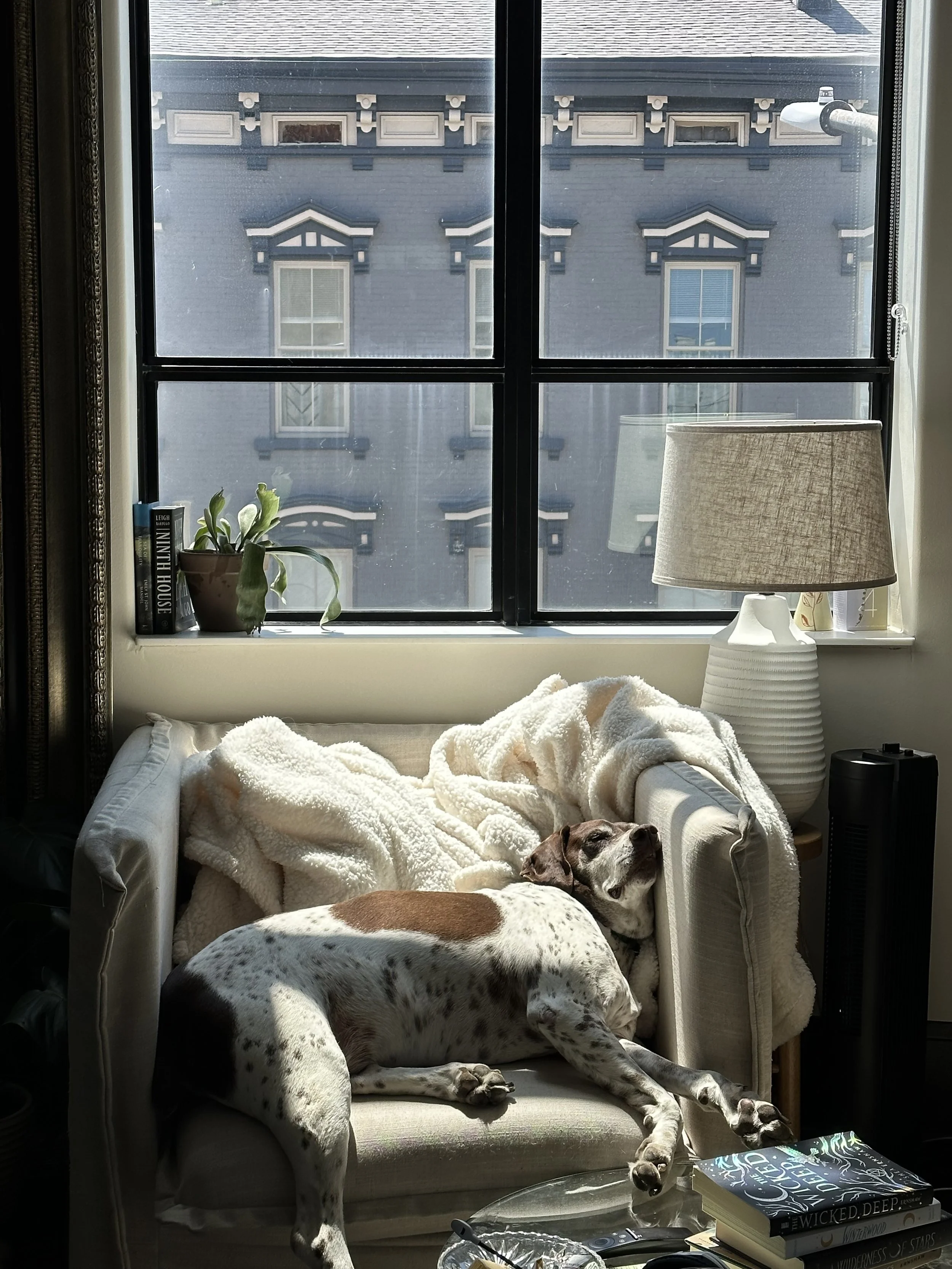 Red is my boy. He is a 13-year-old German Shorthaired Pointer that I got when I was 12 - I’m now 26. He turned 13 on 6/6/24, born in 2011. He had more energy than we knew how to handle, but thankfully we lived on a large cattle farm in central Kentucky until he was 7 (I was 19). We now live in a small historic bungalow with a much smaller yard and lots of strangers in the neighborhood for Red to sniff. Before, Red was unsure of other pups, pets, and people. Now, he‘s a total extrovert.