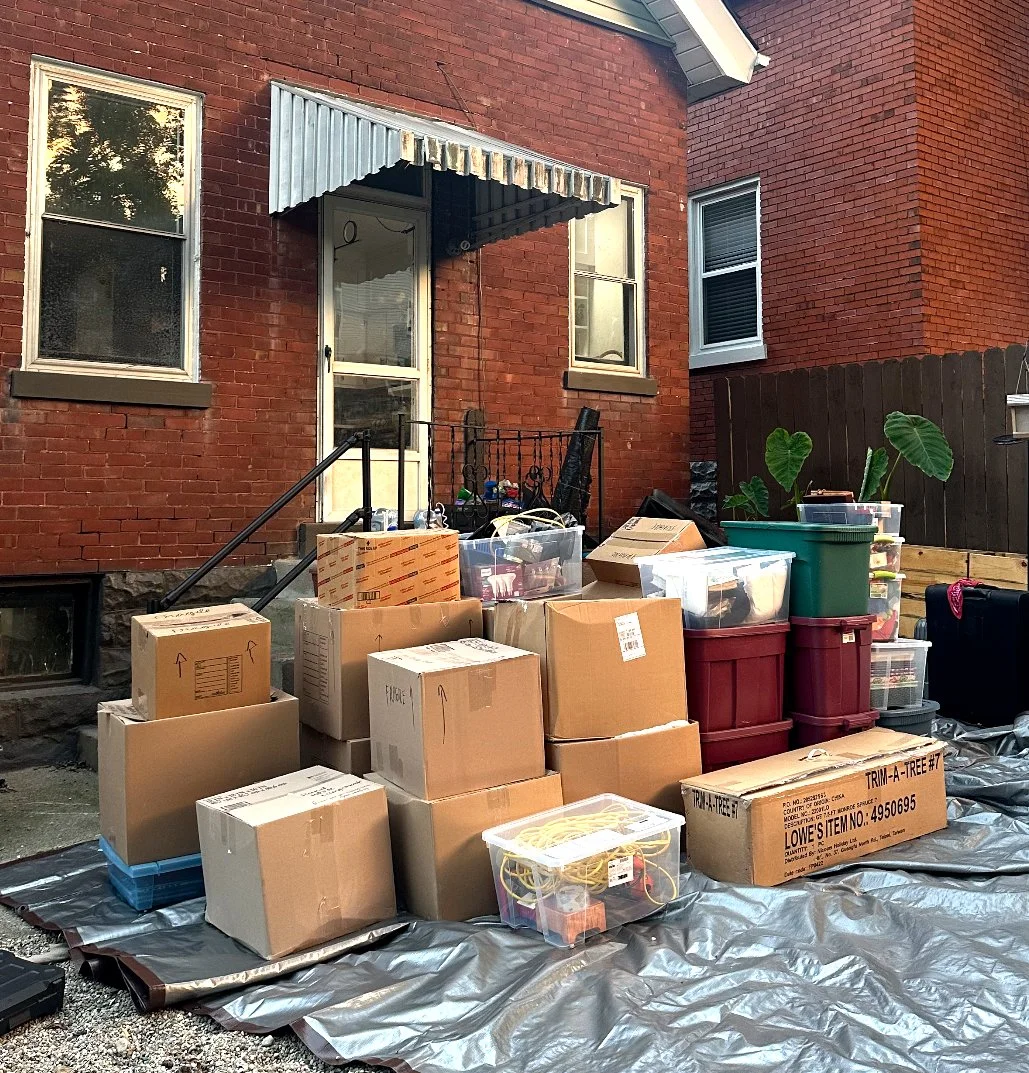 After getting all of my late dad’s things into my basement and organizing for months, I had one week to move everything back out of the basement in the August heat, alone. I laid a tarp out, hauled everything up the cellar steps, and covered them back up with another tarp once everything was outside. It was heartbreaking to undo all I had done, and I still haven’t reorganized everything over a year later. Anything left inside was covered in concrete dust, and/or wet and ruined.